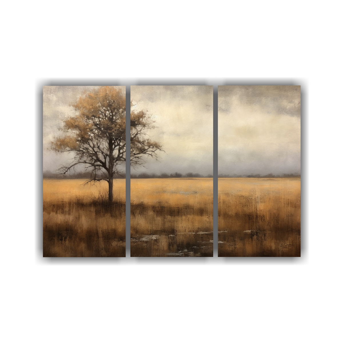 Pintura De Campo Y árbol En Decoración: Set 3 Arte Creativa.