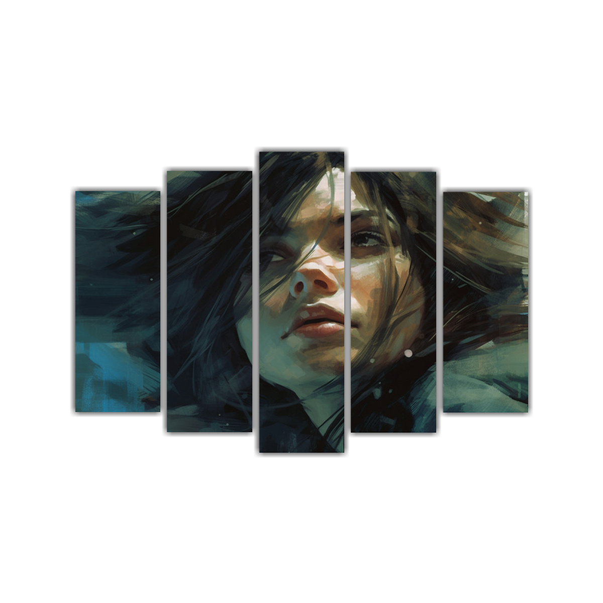 Pintura De Chica Joven Con Cabello Largo En Colores Vibrantes
