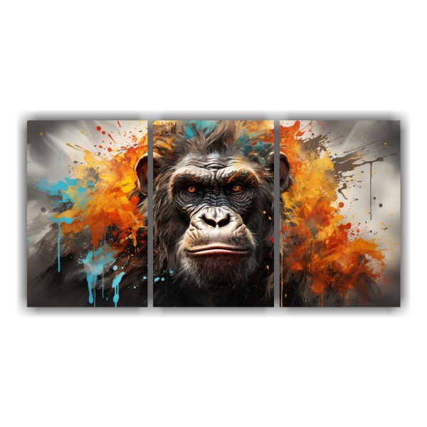 Pintura De Chimpancé En Acuarelas Coloridas En Bastidor