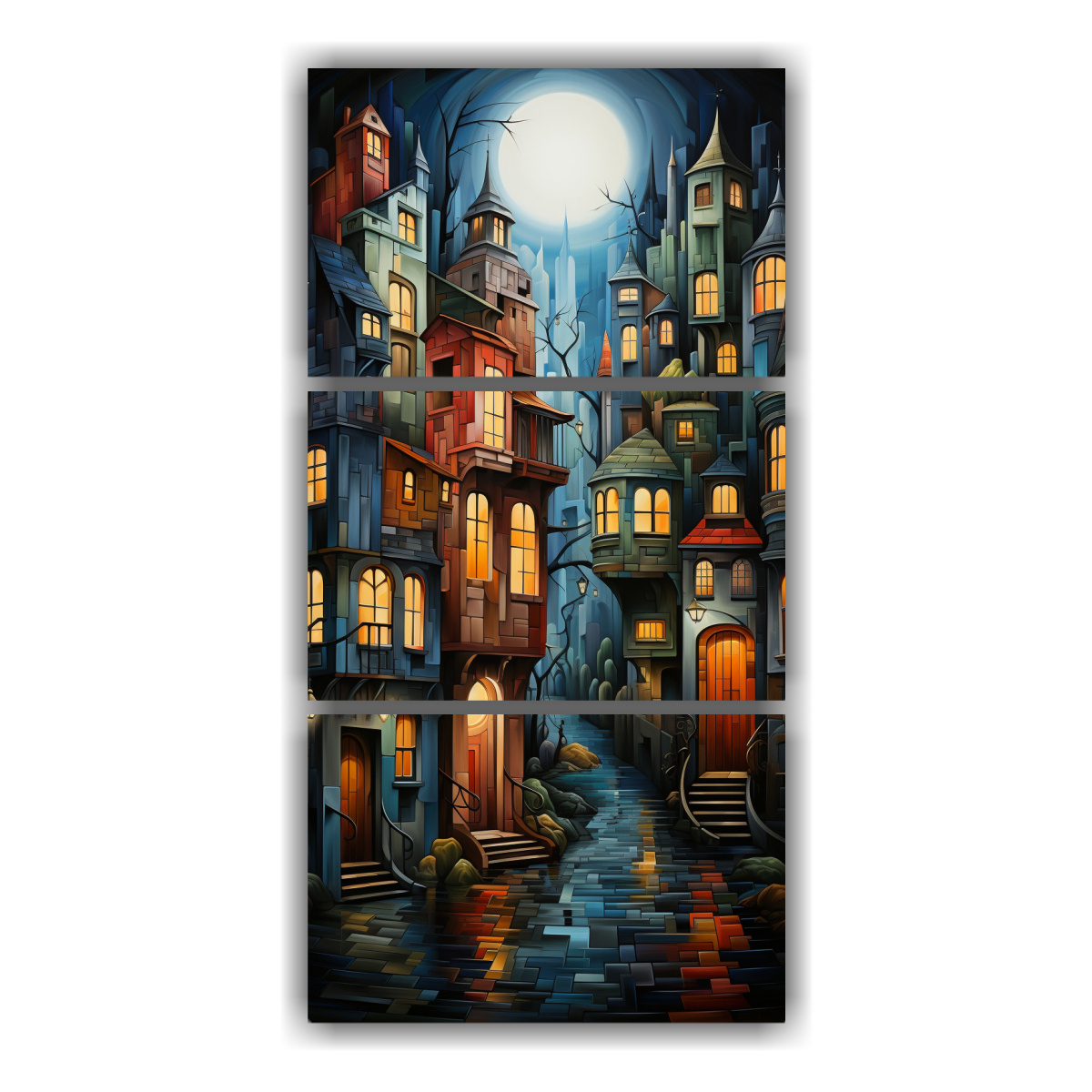 Pintura De Ciudad En Estilo Cubista Para Decoración De Pared.