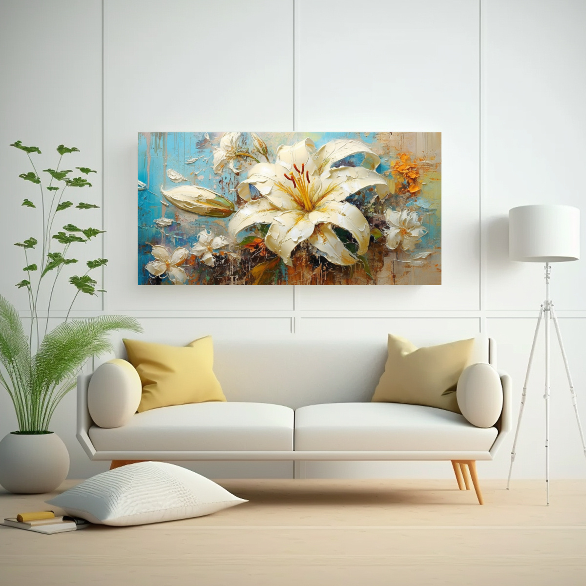 Pintura De Comedor En Lienzo Con Lirio Colorido Y Pigmento Amarillo En Canva