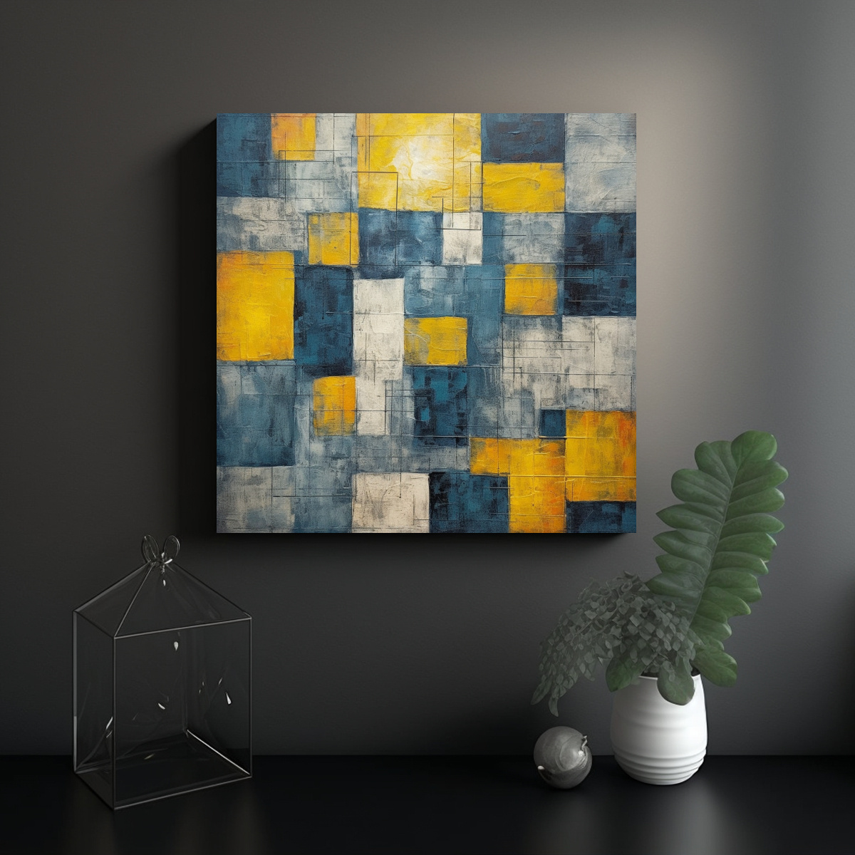 Pintura De Cuadros Coloridos Azul Y Amarillo Para Decoración.