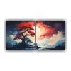 Pintura De Decoración Con Representación De Dos Cuadros Dibujo De Un Pino En Colores Turquesa Y Negro, Atmósfera Neonoir