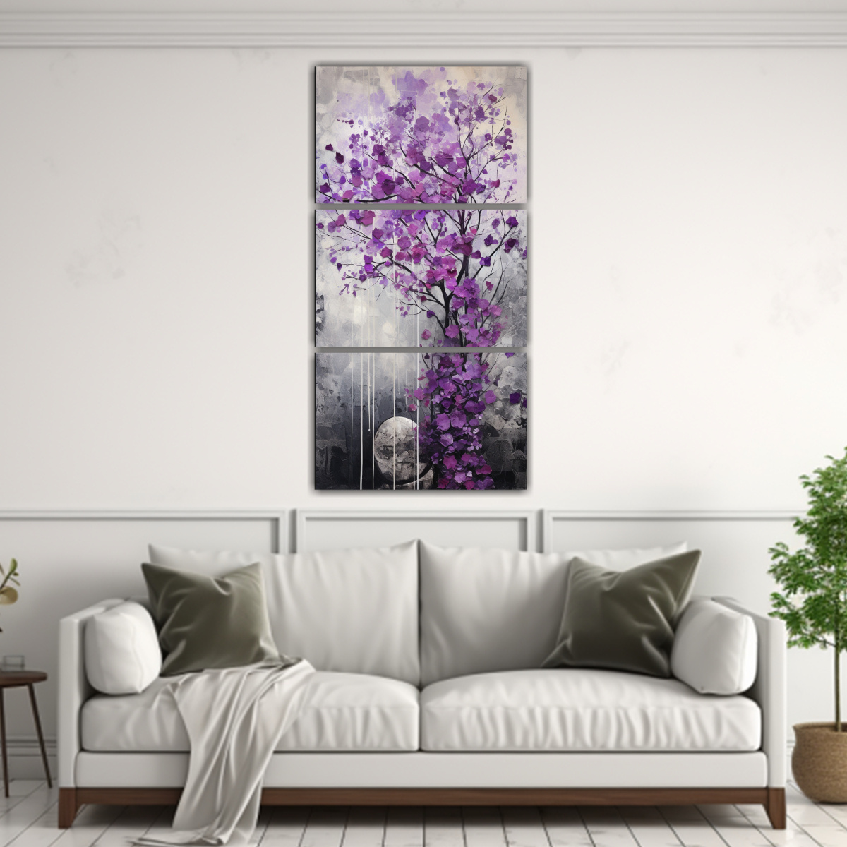 Este cuadro en movimiento con detalles intrincados en morado y plata es ideal para decorar tu sala de estar Combínalo con muebles en tonos neutros para crear un contraste llamativo y sofisticado Además, puedes añadir cojines en colores plateados, grisáceos y beige para darle un toque de elegancia ¡Convierte tu sala en un espacio único y vanguardista con este impresionante cuadro!