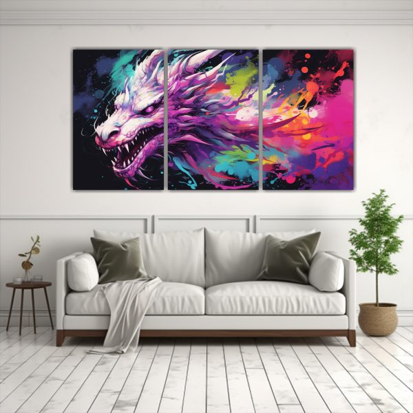 Coloca el Cuadro Estrellados Dragón en Colores Arcoíris y Púrpura en tu sala de estar para crear un ambiente moderno y vibrante Combínalo con muebles de tonos neutros para que resalte y se convierta en el centro de atención de la habitación ¡Dale vida a tus paredes con este diseño único!