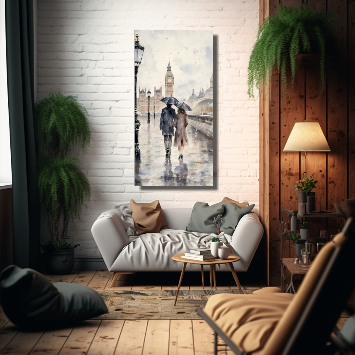 Pintura De Decoración: Pareja Caminando Por El Puente De Londres En Tela En Bastidor Vanguardia