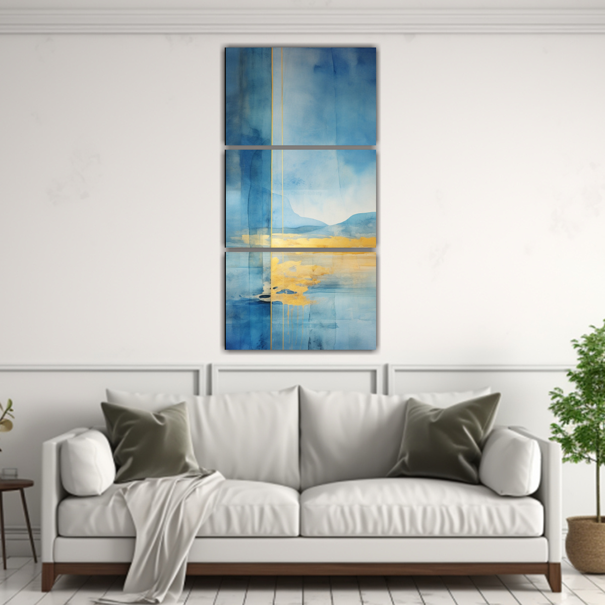 DecoCuadros ofrece una pintura de efecto visual en tonos azul, verde azulado y dorado con tres composiciones cálidas Confeccionado con tela de alta calidad y bastidores de madera, nuestros cuadros decorativos son perfectos para darle vida a tus espacios Descubre nuestros diseños exclusivos, la mejor calidad y los precios más económicos del mercado Envío gratis en Santiago y entregas rápidas a nivel nacional ¡Decora tu hogar con estilo!