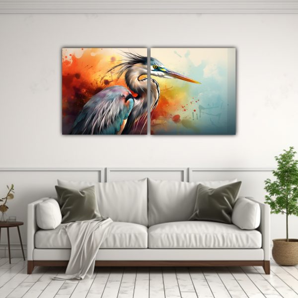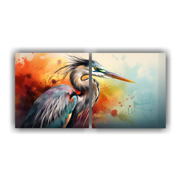 Pintura De Estilo Acuarela Vintage De Un Garza Colorida En Lienzo Rectangular 21