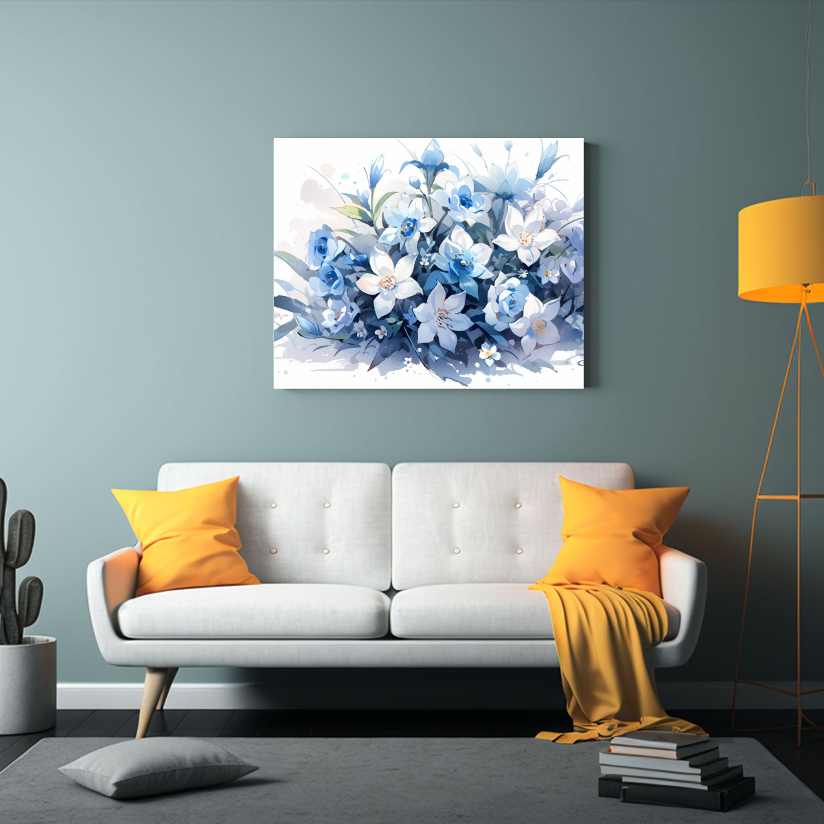 Este cuadro de flores acuarelas en lienzo se vería espectacular en la pared principal de tu sala de estar, justo encima del sofá Combínalo con cojines en tonos beige, azul marino o turquesa para lograr una decoración armoniosa y elegante
