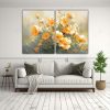 Pintura De Flores Amarillas En Lienzo Estilo Decorativo.