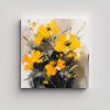 Pintura De Flores Amarillas Y Cian En Lienzo Para Decoración Del Comedor