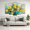 Pintura De Flores Amarillas Y Cian En Lienzo Para Decoración