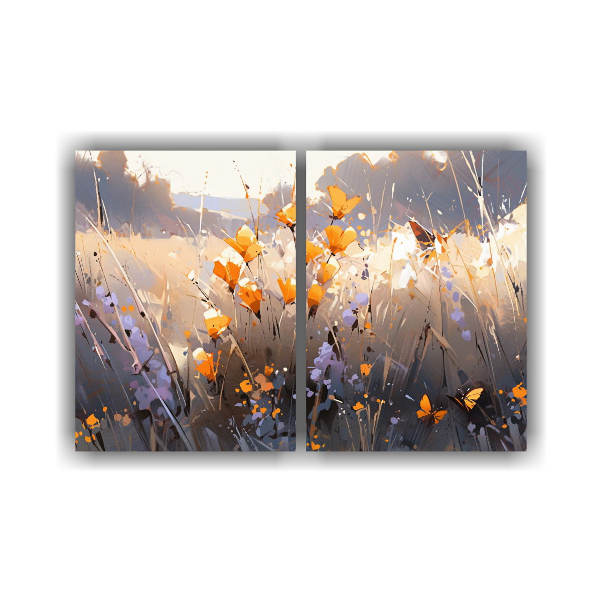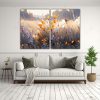Pintura De Flores Amarillas Y Moradas En Lienzo Decorativo.