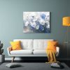 Pintura De Flores Blancas Y Azules En Lienzo De Arte Decorativo