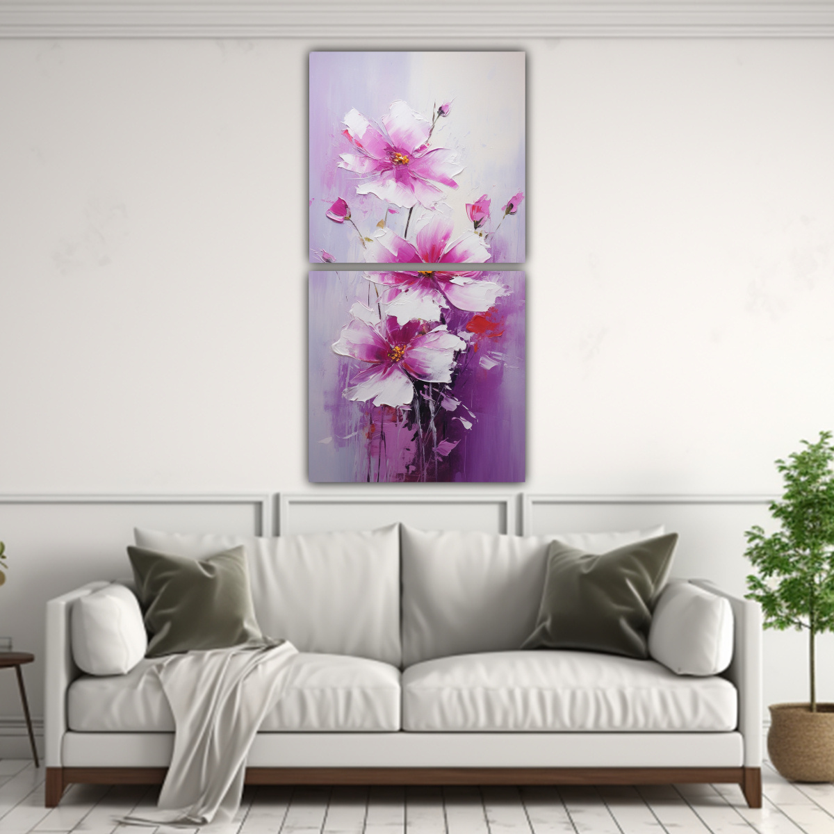 Pintura De Flores Blancas Y Magenta En Lienzo Para Oficina