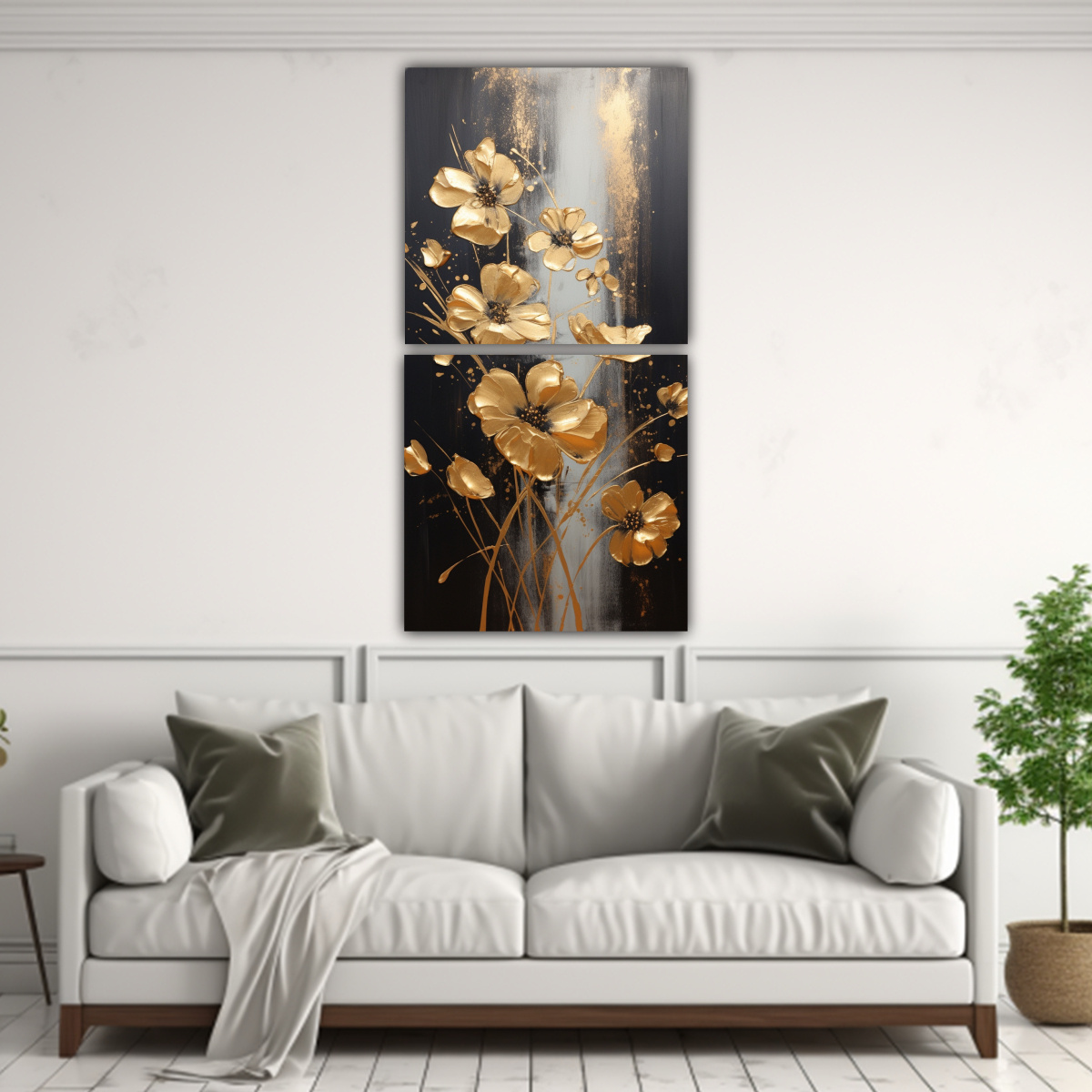 Decora tu hogar con este hermoso cuadro de flores doradas y negras en lienzo Con su diseño exclusivo y alta calidad, brindará elegancia y estilo a cualquier pared Los precios más baratos del mercado y entregas rápidas y gratuitas en Santiago Envíos express a regiones