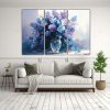 Pintura De Flores Duradera En Lienzo Púrpura Y Cian Para Decorar.
