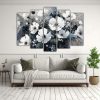 Pintura De Flores En Blanco Y Negro Sobre Lienzo Para Decoración.