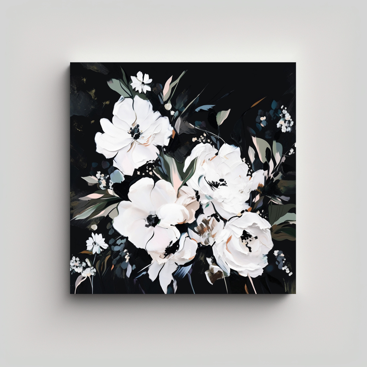 Pintura De Flores En Lienzo Blanco Y Negro Para Decoración Del Cuarto
