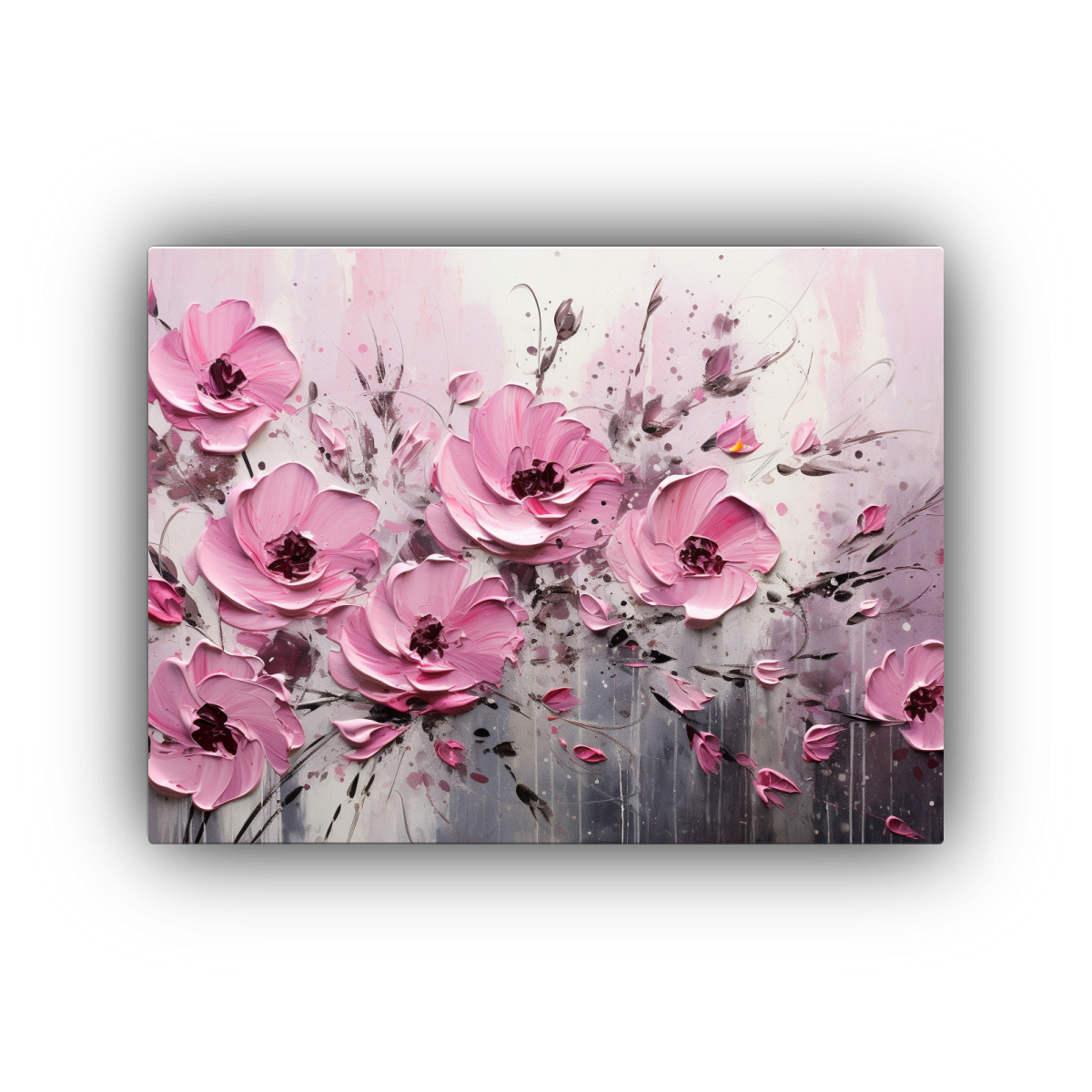 Renueva tu hogar con esta pintura de flores en lienzo con colores vibrantes en negro y rosa Dale un toque de elegancia y alegría a tu espacio con este cuadro único Entregas rápidas y gratis en Santiago, envíos express a regiones