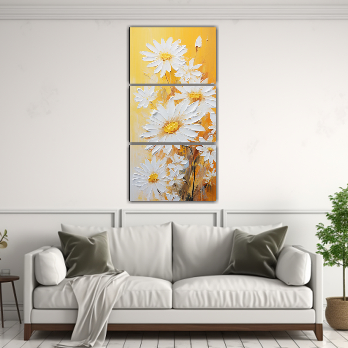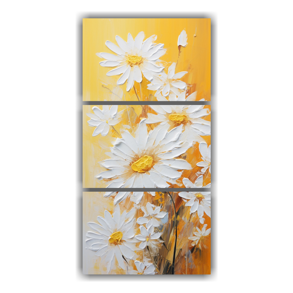 Decora tu sala de estar con esta pintura de flores amarillo y blanco en lienzo para agregar un toque de elegancia y frescura Combina perfectamente con muebles de tonos neutros o con acentos dorados para resaltar su belleza