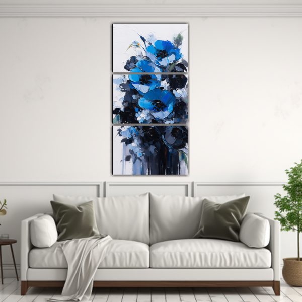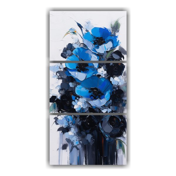 Pintura De Flores En Lienzo En Colores Negro Y Azul Para Decoración.