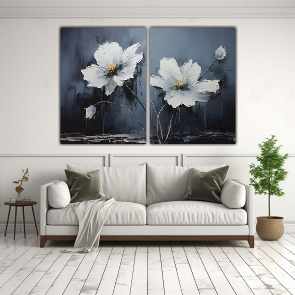 Para realzar la belleza de este cuadro, te recomendamos colocarlo en la sala de estar sobre un sofá de color neutro para que resalte También queda perfecto en un dormitorio, creando un ambiente relajante y sofisticado ¡Dale vida a tus paredes con nuestra exclusiva pintura de flores en lienzo!