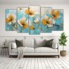 Pintura De Flores En Tonos Turquesa Estilo Galería En Lienzo