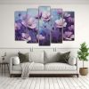 Pintura De Flores Moradas En Lienzo Estilo Decorativo Moderno.