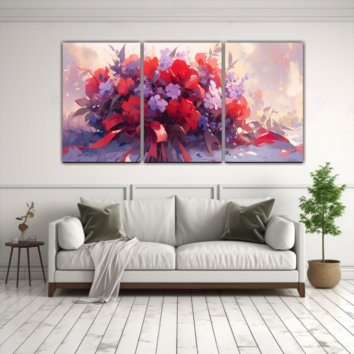 Pintura De Flores Moradas Y Rojas En Lienzo Decorativo