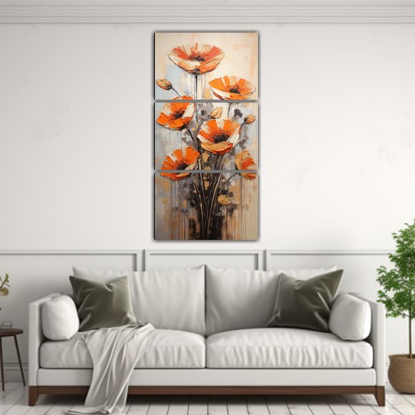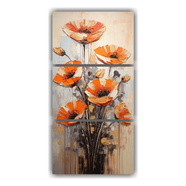 Pintura De Flores Naranjas Y Negras En Lienzo Para Decoración.