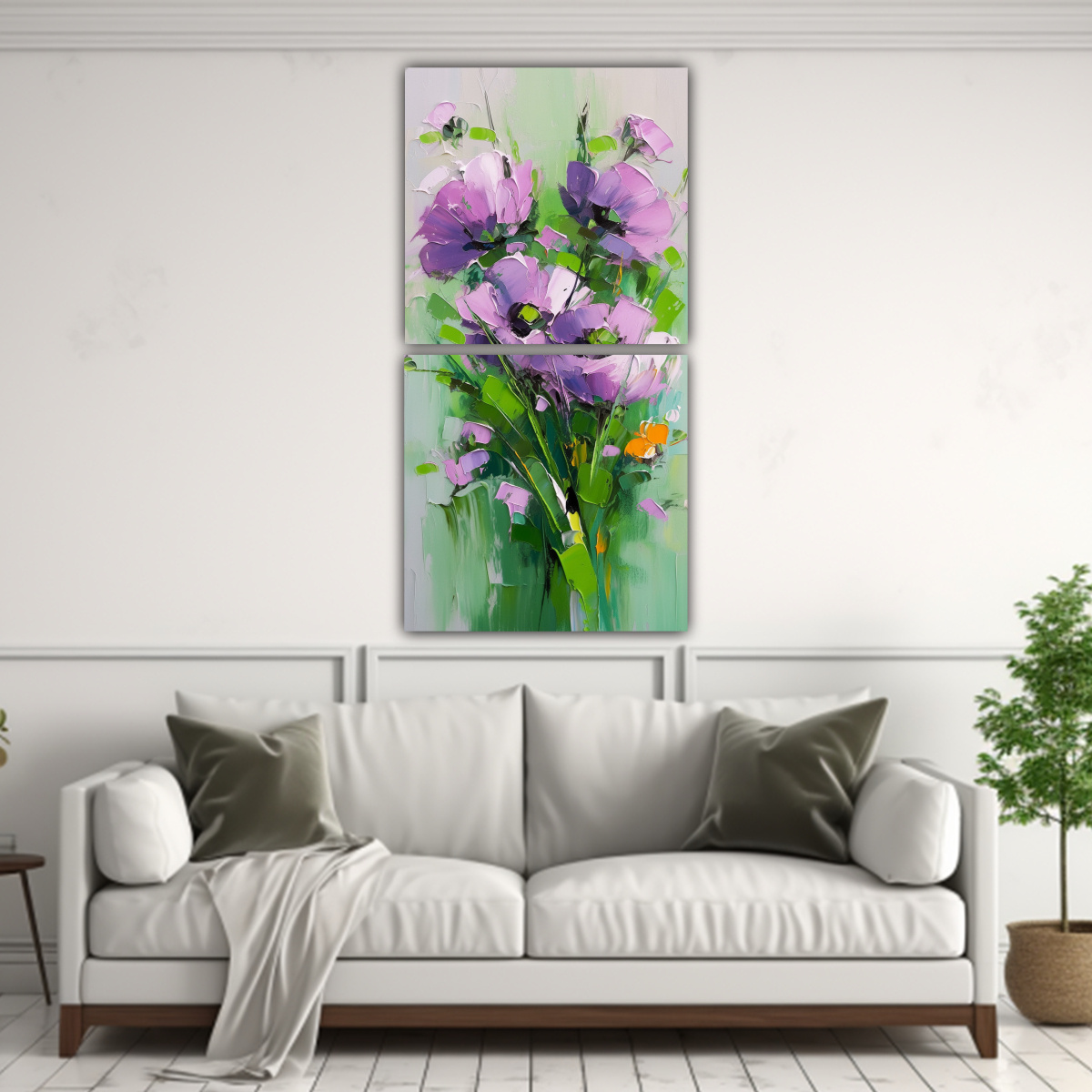Pintura De Flores Verde Y Morado En Lienzo Para Decoración