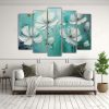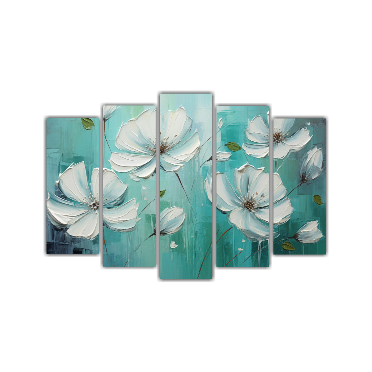 Pintura De Flores Verdes Y Azules En Lienzo Para Decoración Con Cinco Telas En Bastidor