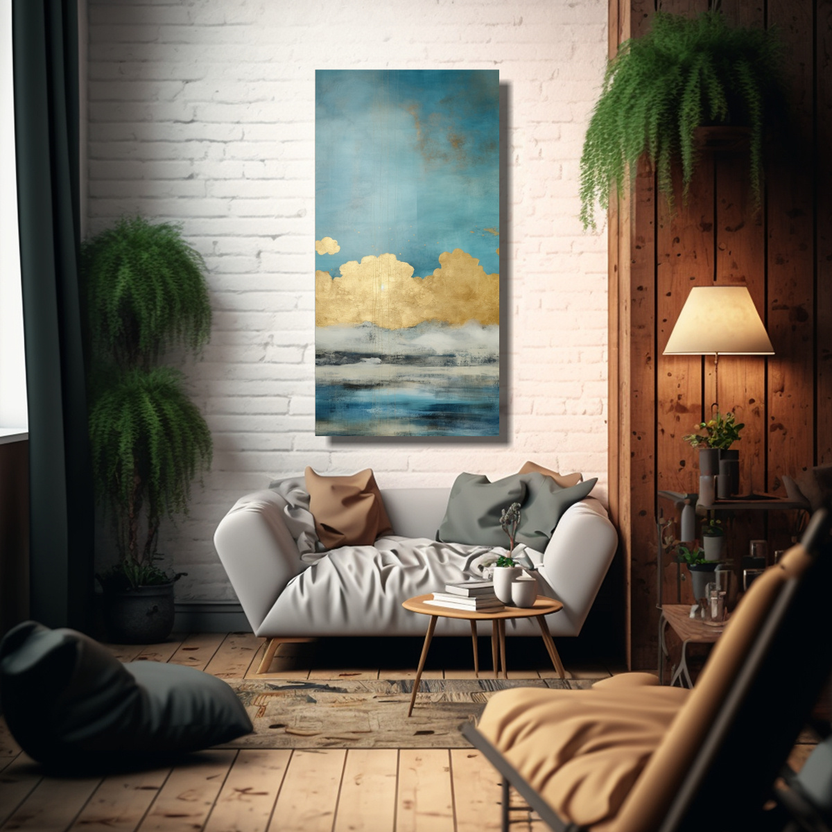DecoCuadros ofrece pinturas de impacto visual con dorado y acuarela en tonos turquesa y dorado para decoración Impresas en tela de alta calidad con bastidores de madera, nuestros cuadros son exclusivos y están disponibles a los precios más económicos del mercado Con entregas rápidas y gratuitas en Santiago, y envíos express a regiones, somos la opción ideal para crear ambientes elegantes y sofisticados en tu hogar u oficina