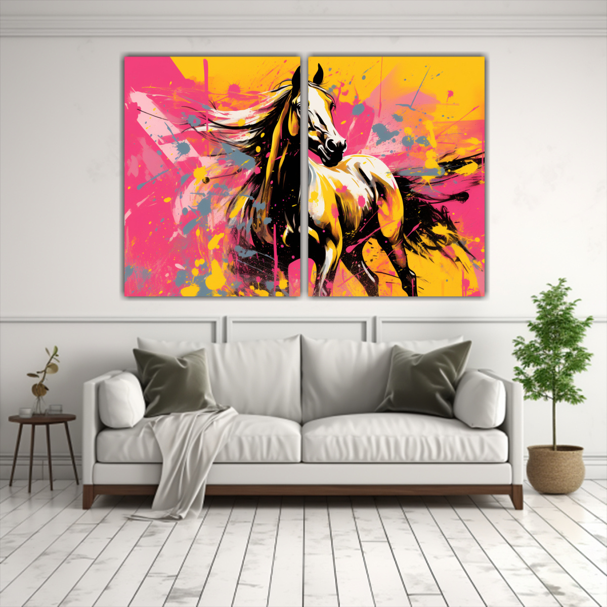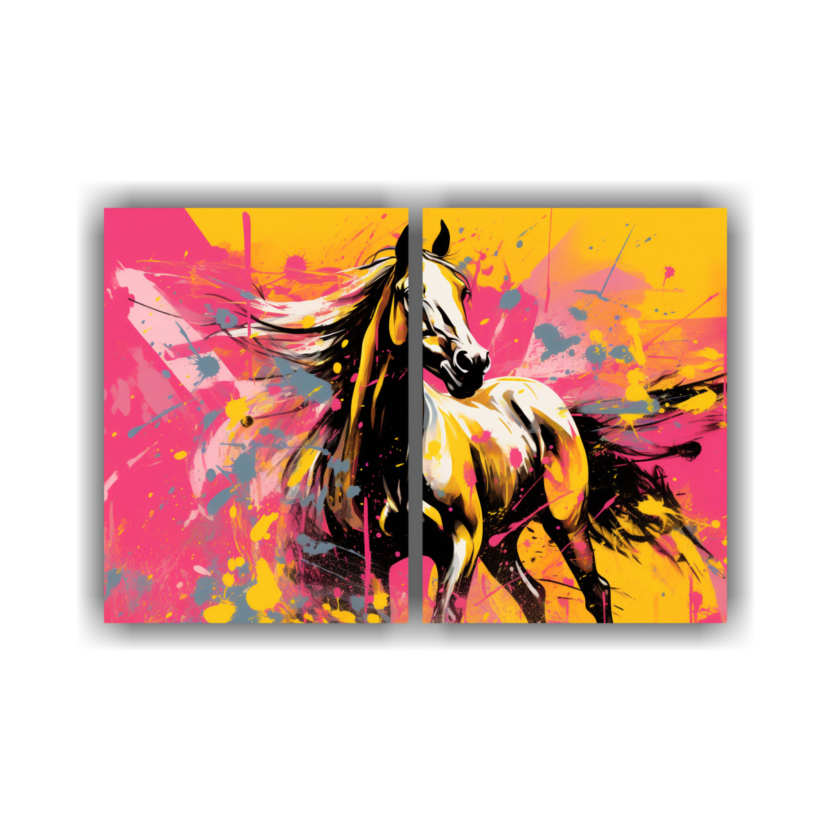 Pintura De Inspiración En Amarillo Y Rosa En Estilo Neo Pop De Un Caballo árabe