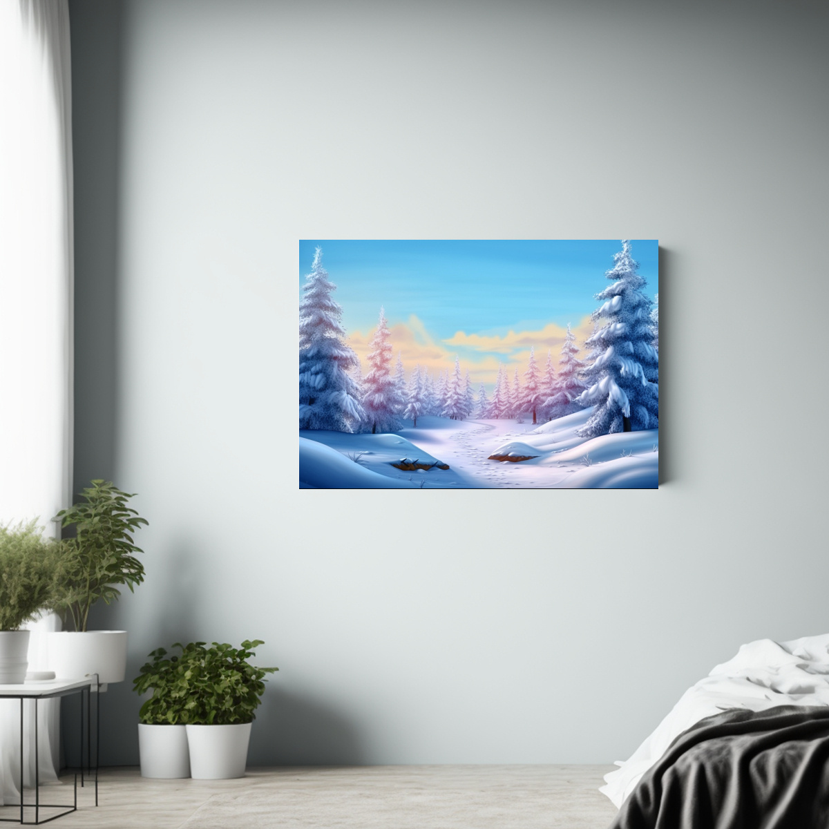 Agrega un toque de elegancia y sofisticación a tus espacios con esta pintura de invierno con árboles de Navidad Envío rápido y gratuito en Santiago, ¡no te lo pierdas!