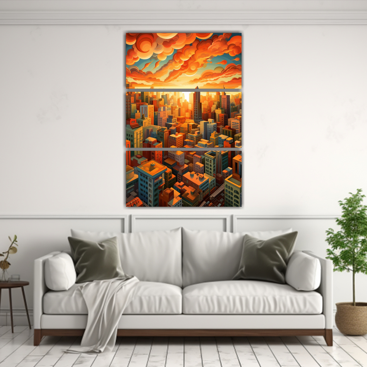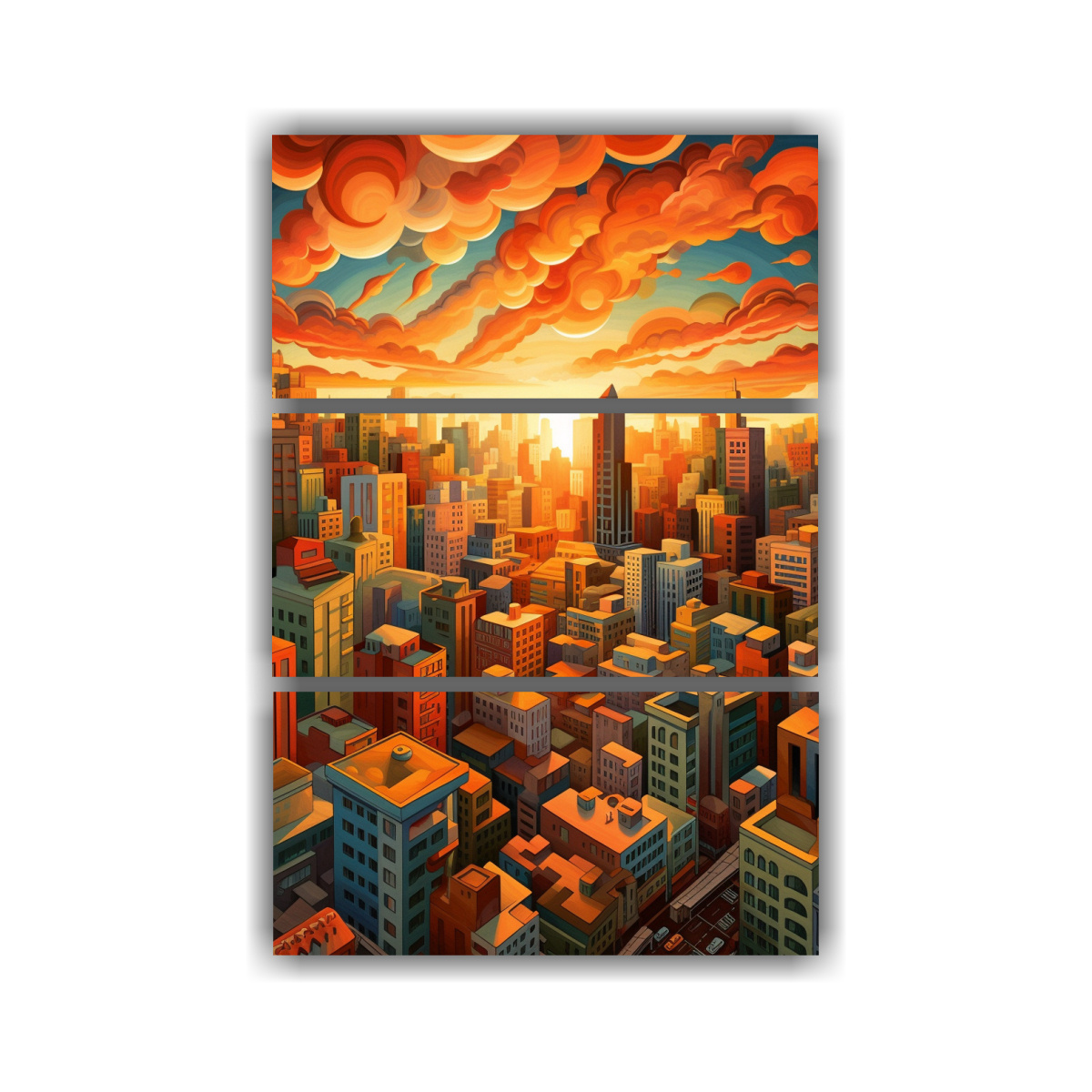 Pintura De Lienzo Decorativo Elegante De Ciudad Al Atardecer