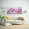 Este cuadro de Tulipanes Púrpuras temáticos en tonos lila, dorado, gris, beige y rosado claro es ideal para decorar salas de estar, dormitorios o espacios donde desees agregar un toque de elegancia y color Combínalo con muebles y accesorios que resalten los tonos púrpuras para crear un ambiente armonioso y sofisticado
