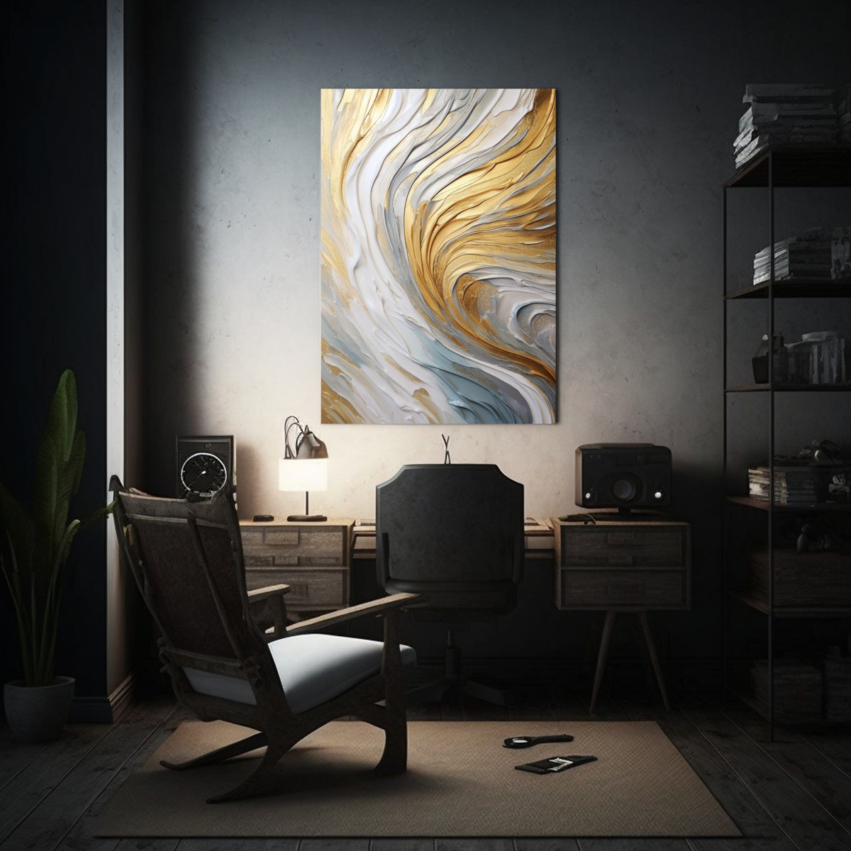 La pintura de lujo Composición Forma Época en ondas sonoras es perfecta para agregar estilo a tus paredes Con colores plateado, chocolate, gris, beige y coral, este cuadro impresionará a todos los amantes del arte