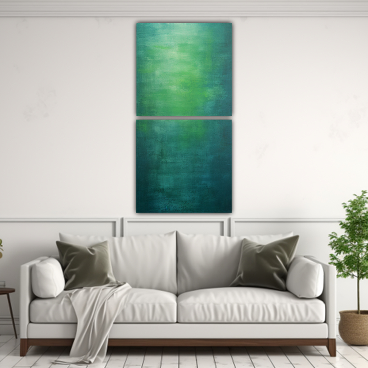 Este cuadro es ideal para crear un ambiente elegante y moderno en tu sala de estar Combínalo con muebles en tonos neutros como blanco, gris o beige, y añade cojines o cortinas en tonos azules o verdes para resaltar los colores del cuadro Colócalo sobre un sofá o una repisa para que sea el centro de atención de la habitación