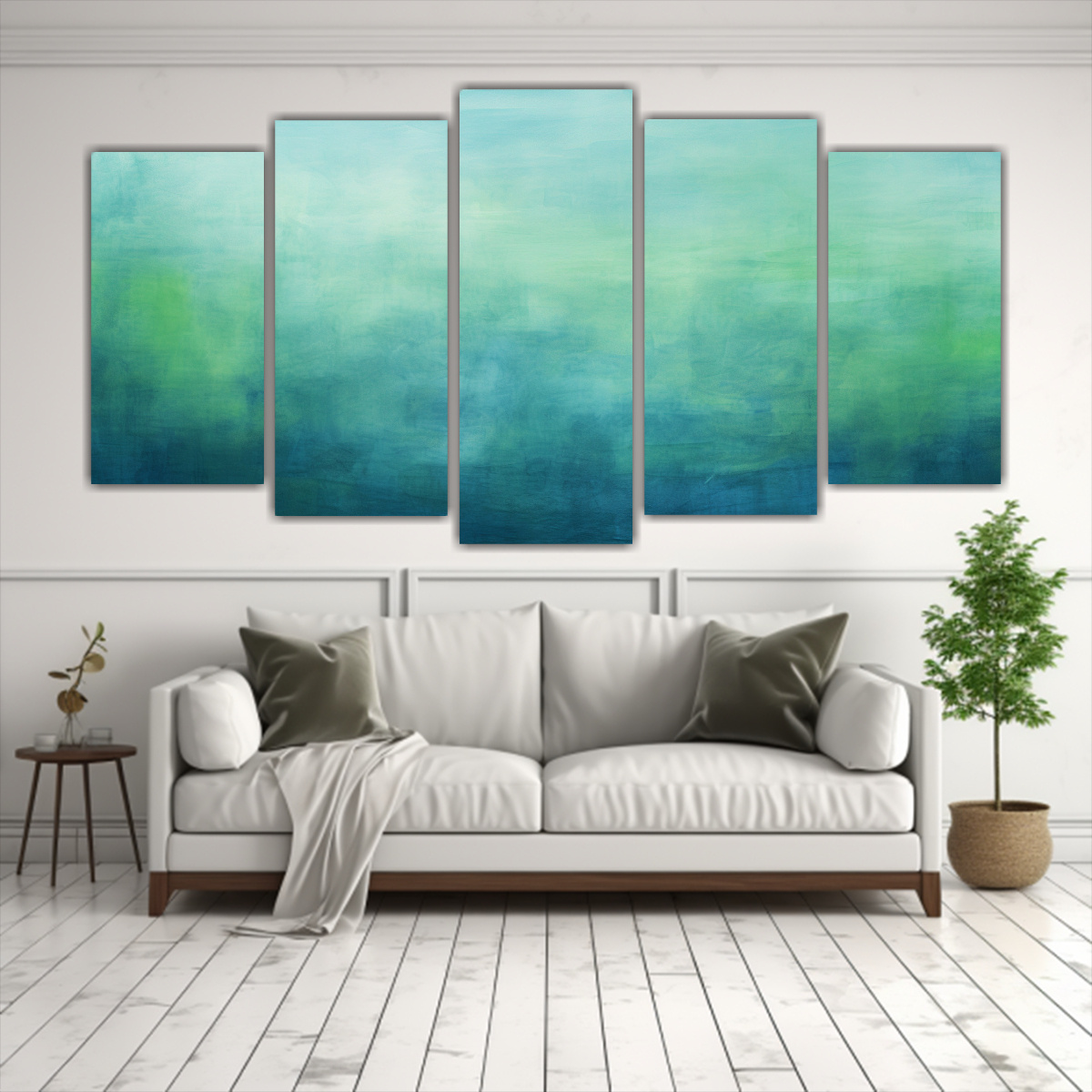 Este cuadro es perfecto para decorar tu sala de estar Colócalo sobre un sofá de color neutro para resaltar los tonos vibrantes de la pintura Combínalo con cojines en tonos verdes y azules para crear una armonía cromática en el ambiente Completa la decoración con accesorios plateados y elementos naturales, como plantas o candelabros de cristal De esta manera, lograrás un espacio elegante y contemporáneo