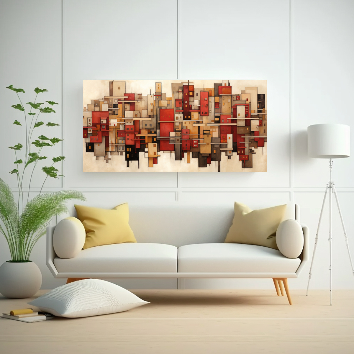Este cuadro de Montreal vista desde arriba con tonos rojos y amarillos es perfecto para colocar en la sala de estar sobre un sofá grisáceo para resaltar los colores cálidos También queda genial en la oficina para inspirar creatividad y dinamismo