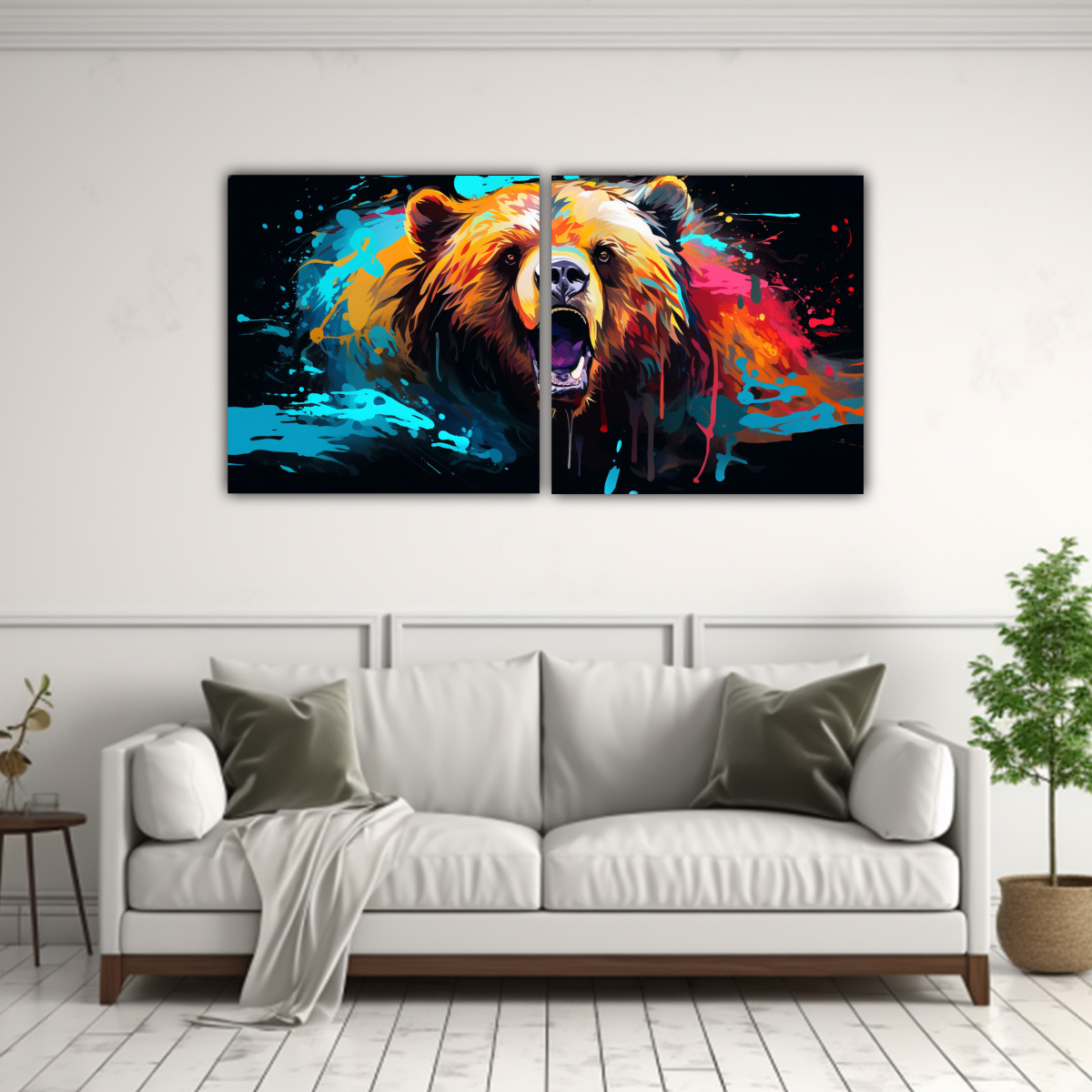Este cuadro de oso pardo en colores prismatic y acuamarina es ideal para colocar en la sala de estar, creando un ambiente moderno y sofisticado Combínalo con muebles en tonos neutros para resaltar su belleza y elegancia