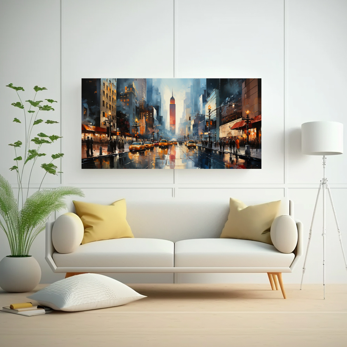 Coloca este cuadro en tu sala de estar para crear un ambiente sofisticado y moderno Combínalo con muebles en tonos neutros y accesorios metálicos para resaltar los colores plateados, dorados y grises del cuadro ¡Impresiona a tus invitados con esta icónica vista de Times Square en Manhattan!