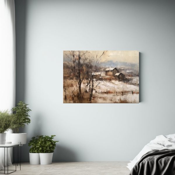 Pintura De Paisaje Invernal Urbano En Lienzo De Tela Texturizada Wabi Sabi