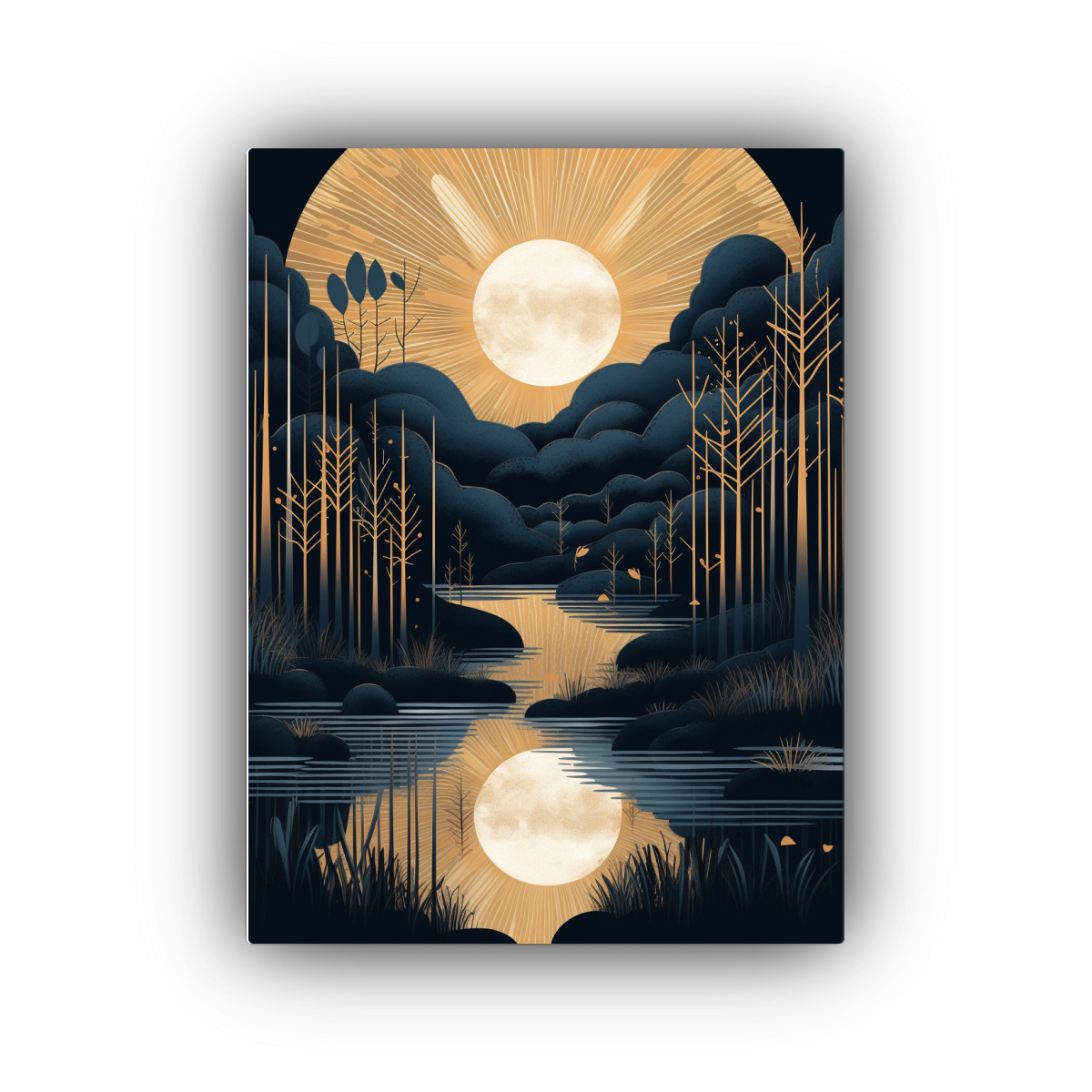Pintura De Paisaje Nocturno Con La Luna Y El Cielo Estrellado En Canva Concepto Impresionante.