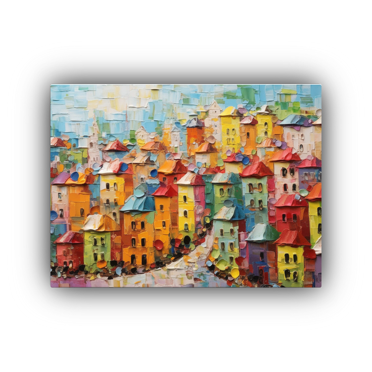 Pintura De Paisaje Urbano Gruesa, Colorida Y Linda