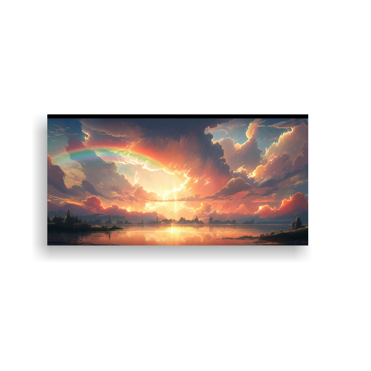 Atrapa la magia de la naturaleza con este cuadro de paisajes que refleja la paz y tranquilidad de los amaneceres y atardeceres Los colores vibrantes y el arcoíris te transportarán a un mundo de fantasía y serenidad Ideal para salas, dormitorios o espacios de relajación