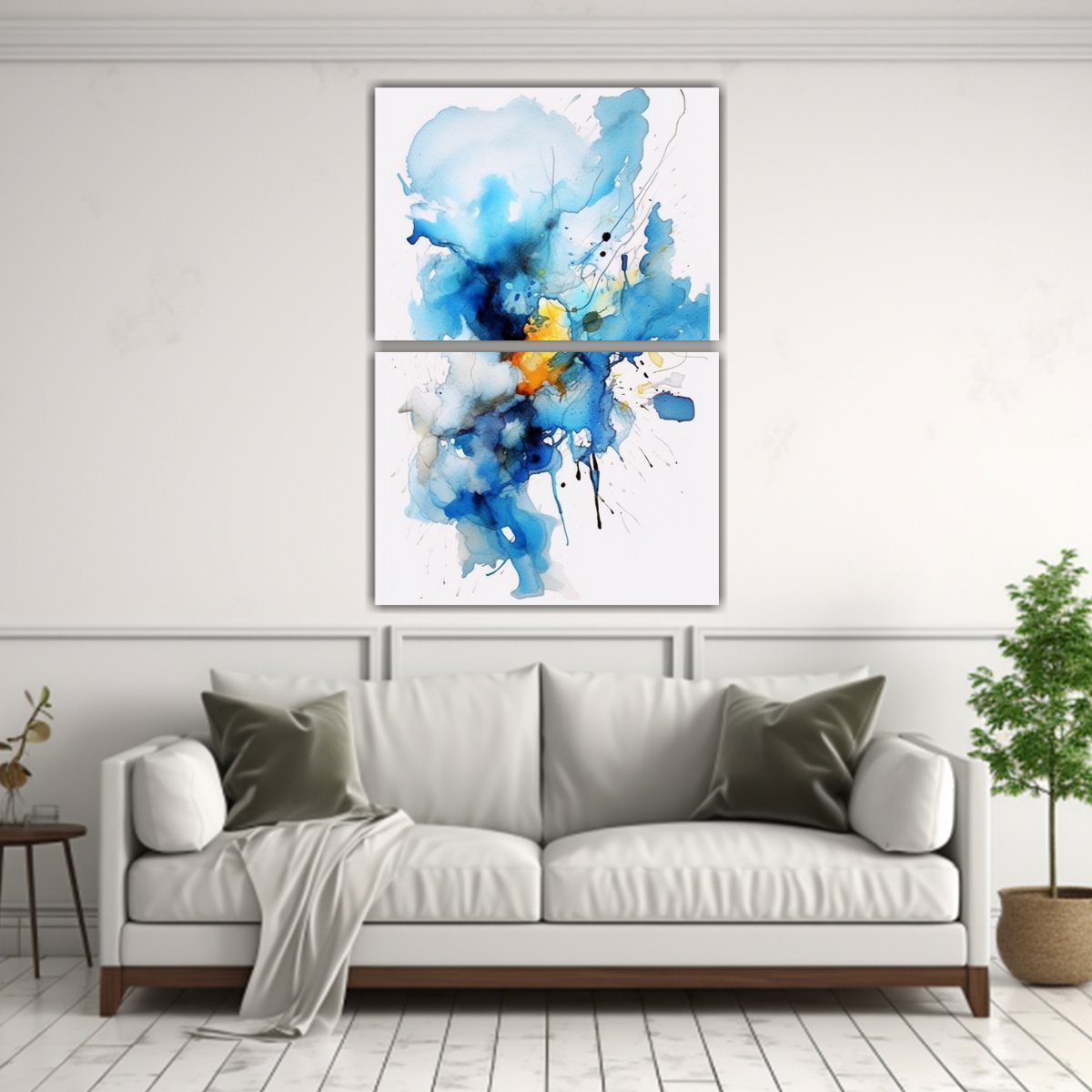 Pintura De Pared Abstracta Acuarela Azul Línea Arte Refinado