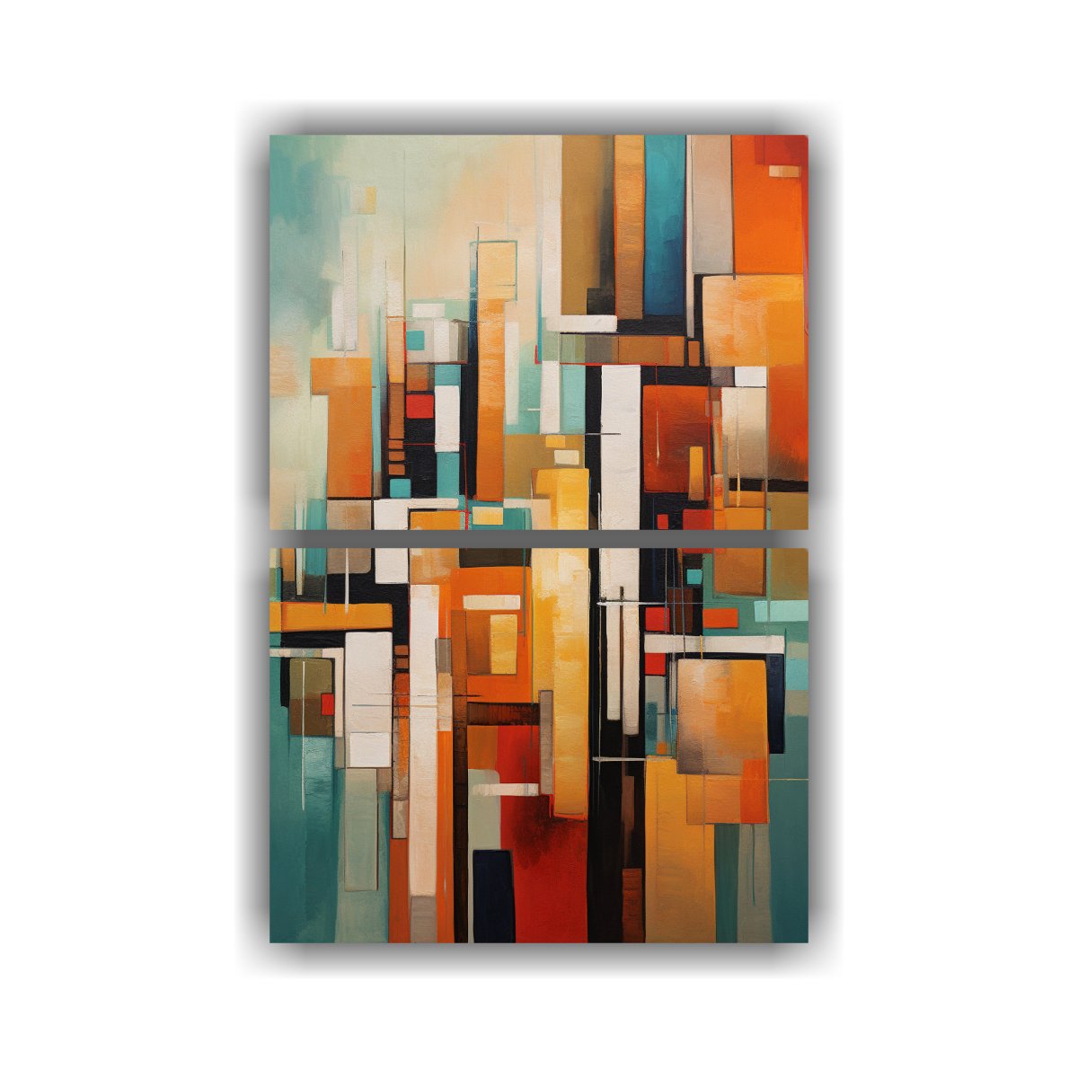 Pintura De Pared Abstracta Diptico De Diseño Detallado En Estilo Óleo